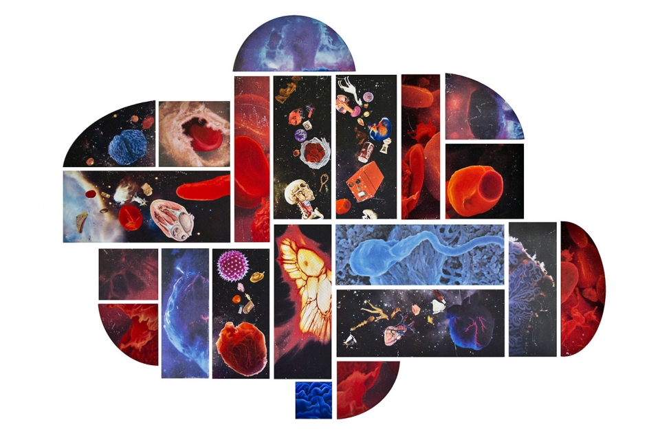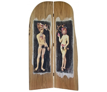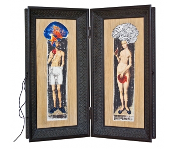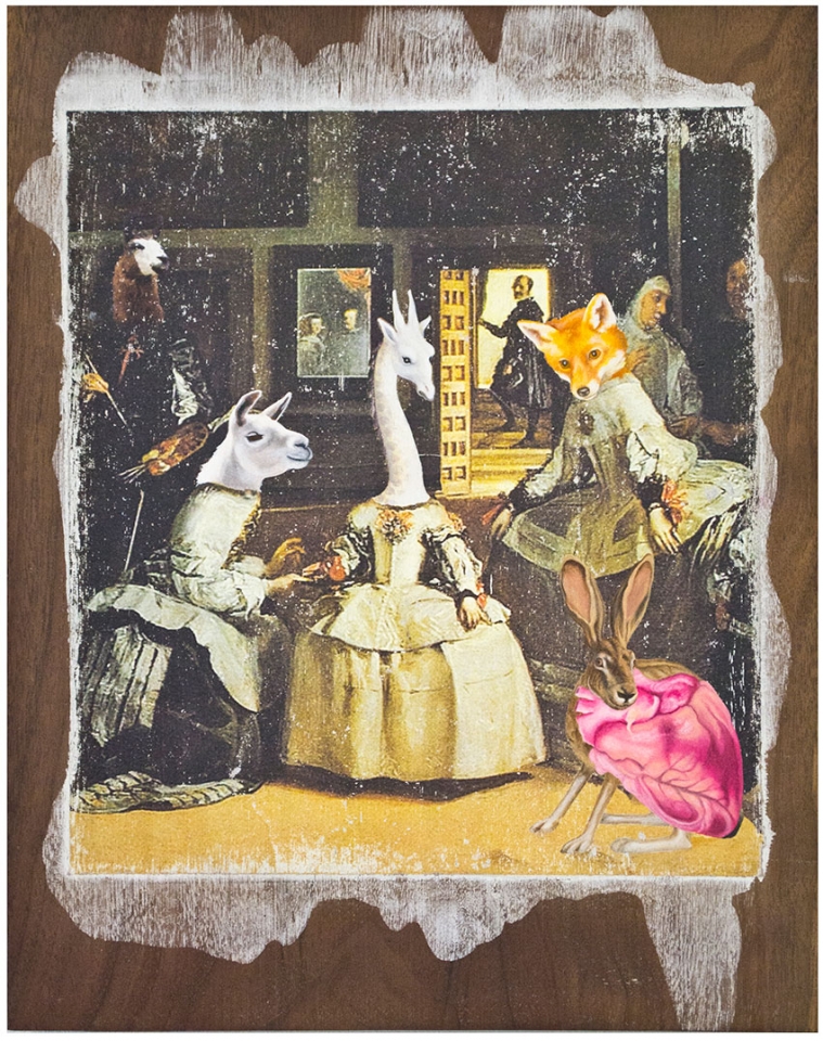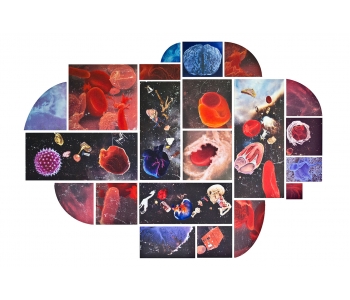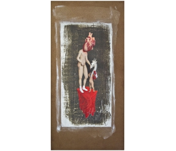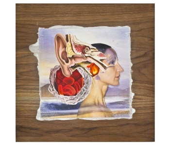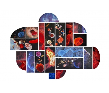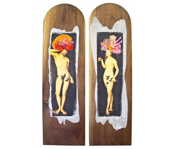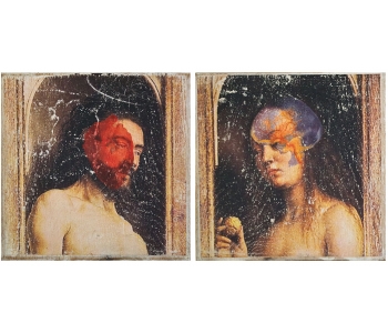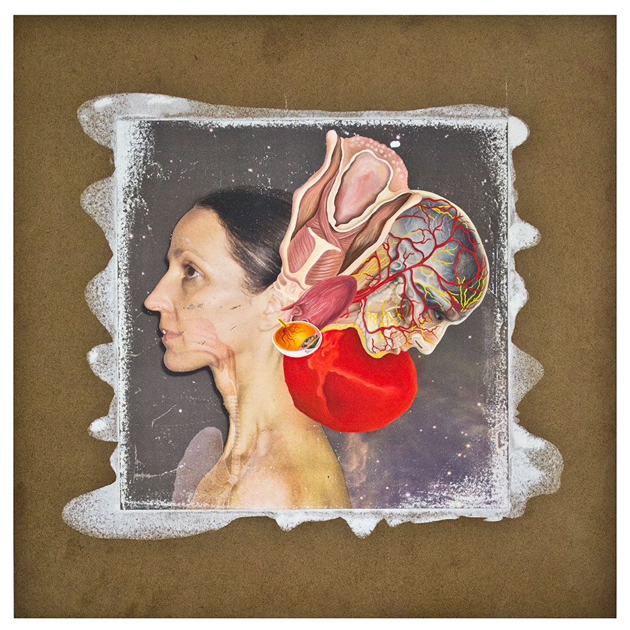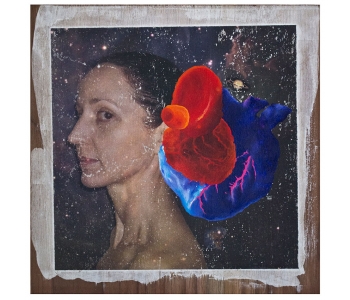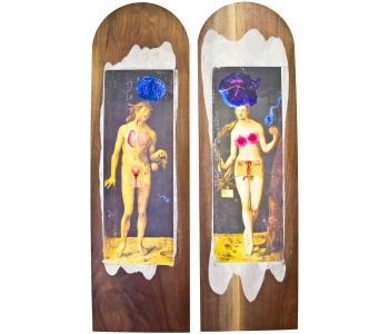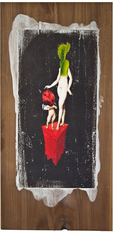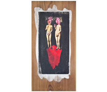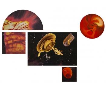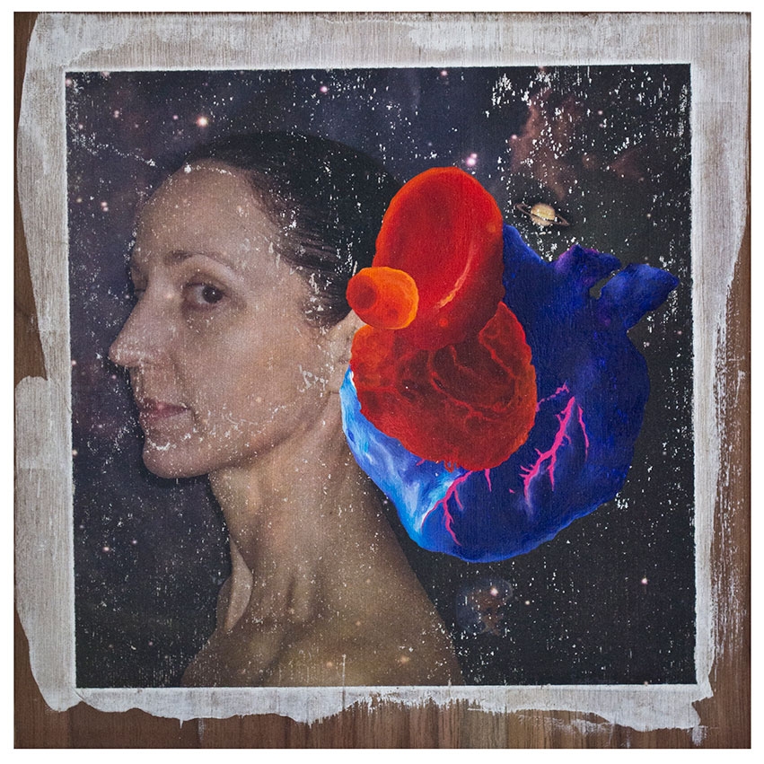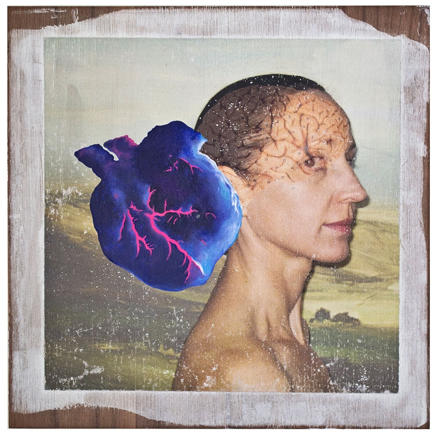 In this body of work I have created pictures in photoshop combining images from a variety of sources to celebrate a range of beliefs about our origins in a quirky, surreal way. I enjoy using Renaissance paintings, (Adam and Eve from Netherlandish paintings, animals from Bosch etc.) to represent ideas of God, faith, love, creation. These are combined with images from science books to represent evolution, manāmade, science, progress. The technique of gesso transfer allowed me to faithfully represent Renaissance paintings. Into these I built evolutionary concepts symbolised by organs and cells etc. In some ways the oil painted parts infer todays focus on scientific proof, which some see as challenging ideas of faith and a supreme creator. My belief is that faith and science work beautifully together as visually suggested in some of the work.